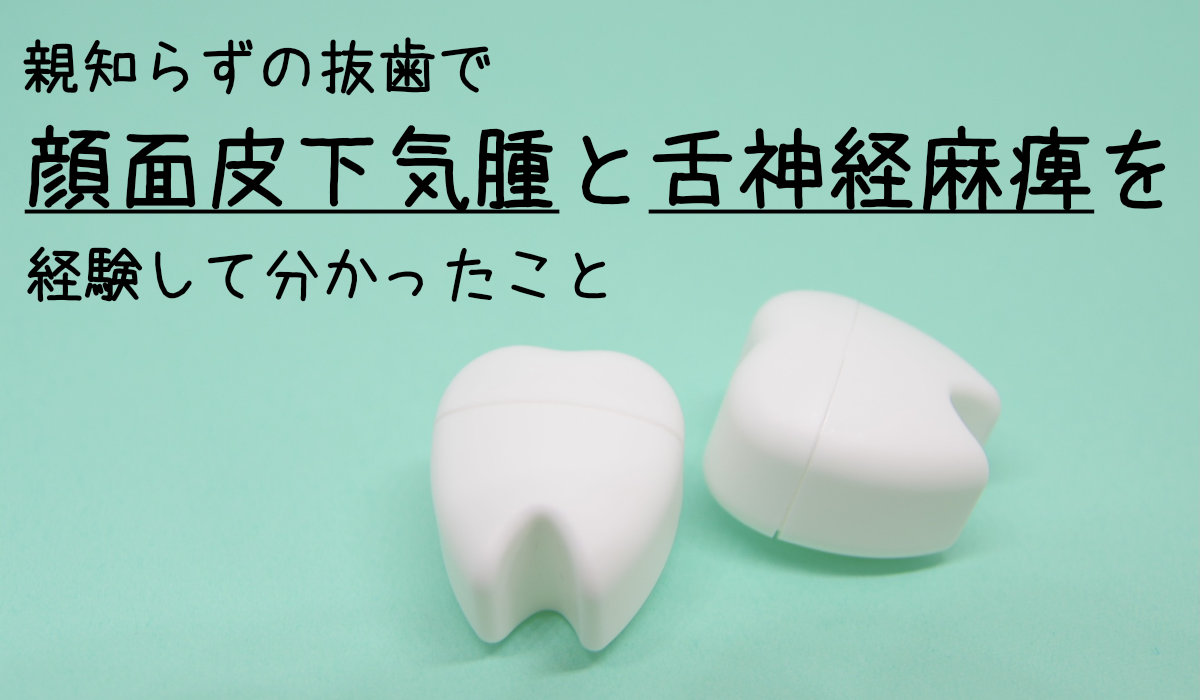 今回の記事では、私が親知らずの抜歯で経験した「顔面皮下気腫」と「舌神経麻痺」についてまとめます。レアケースとはいえ、これから抜歯をする方の参考になれば幸いです。