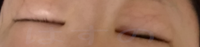 グロいのと恥ずかしいので公開するか悩みましたが、術後5時間後に撮った目の周辺の写真です。全然目が開かずほとんど何も見えませんでした。